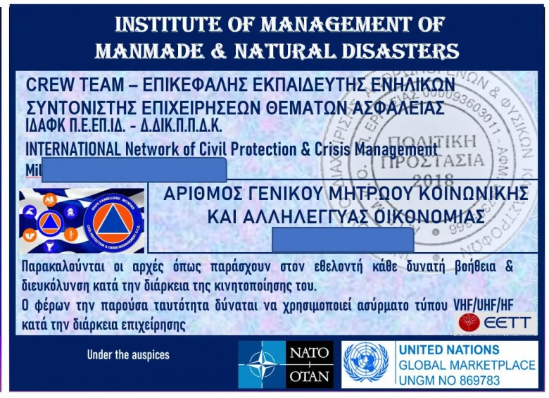 Επικεφαλής Εκπαιδευτής Ενηλίκων , ΤΣΙΦΛΙΔΗΣ Σ. ΧΑΡΑΛΑΜΠΟΣ , Συντονιστής Επιχειρίσεων σε Θέματα Ασφάλειας ( Ι.Δ.Α.Φ.Κ.) Ινστιτούτο Διαχείρισης Ανθροπωγενών Φυσικών Καταστροφών