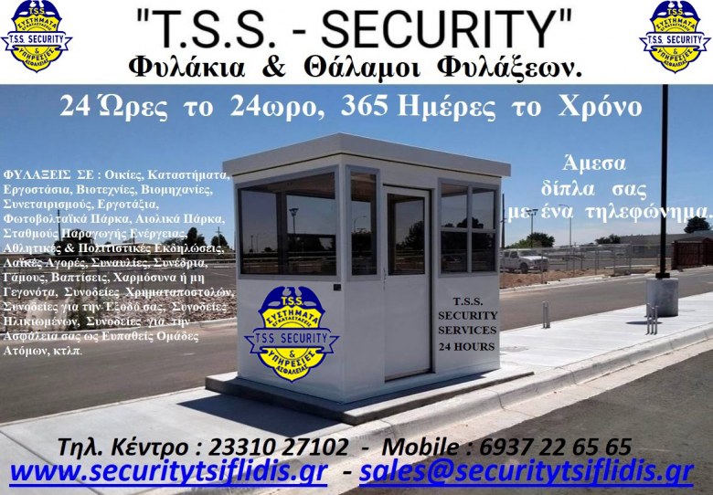 ΦΥΛΑΞΕΙΣ ΤΗΣ T.S.S.-TSIFLIDIS SECURITY SERVICES, 24 ΩΡΕΣ ΠΑΝΤΟΤΕ ΔΙΠΛΑ ΣΑΣ