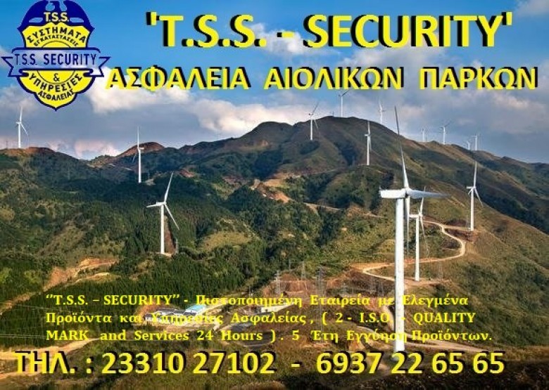 ΦΥΛΑΞΕΙΣ ΑΙΟΛΙΚΩΝ ΠΑΡΚΩΝ – ‘’ T.S.S. – SECURITY ‘’ Τηλ. Κέντρο : 23310 27102 – 6937 22 65 65