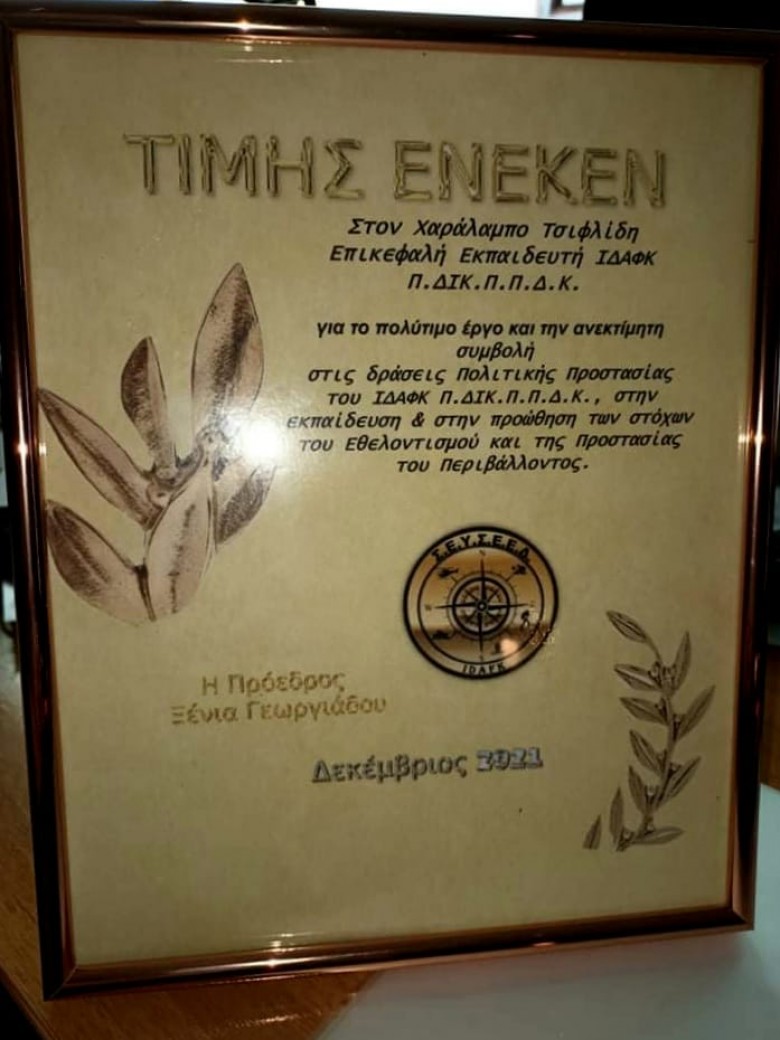 Ευχαριστώ πολύ την ‘’Εύξεινο Λέσχη Βέροιας’’ και τον Πρόεδρο της, Κύριο Καπουρτίδη Χαράλαμπο, για την τιμή που μου έκανε με