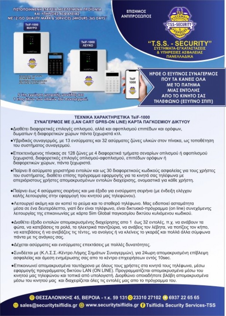 Συστήματα Συναγερμών _ ” TsiF – 1000 ” _ Alarm System Ένα από τα κορυφαία και καλύτερα Συστήματα Ασφαλείας