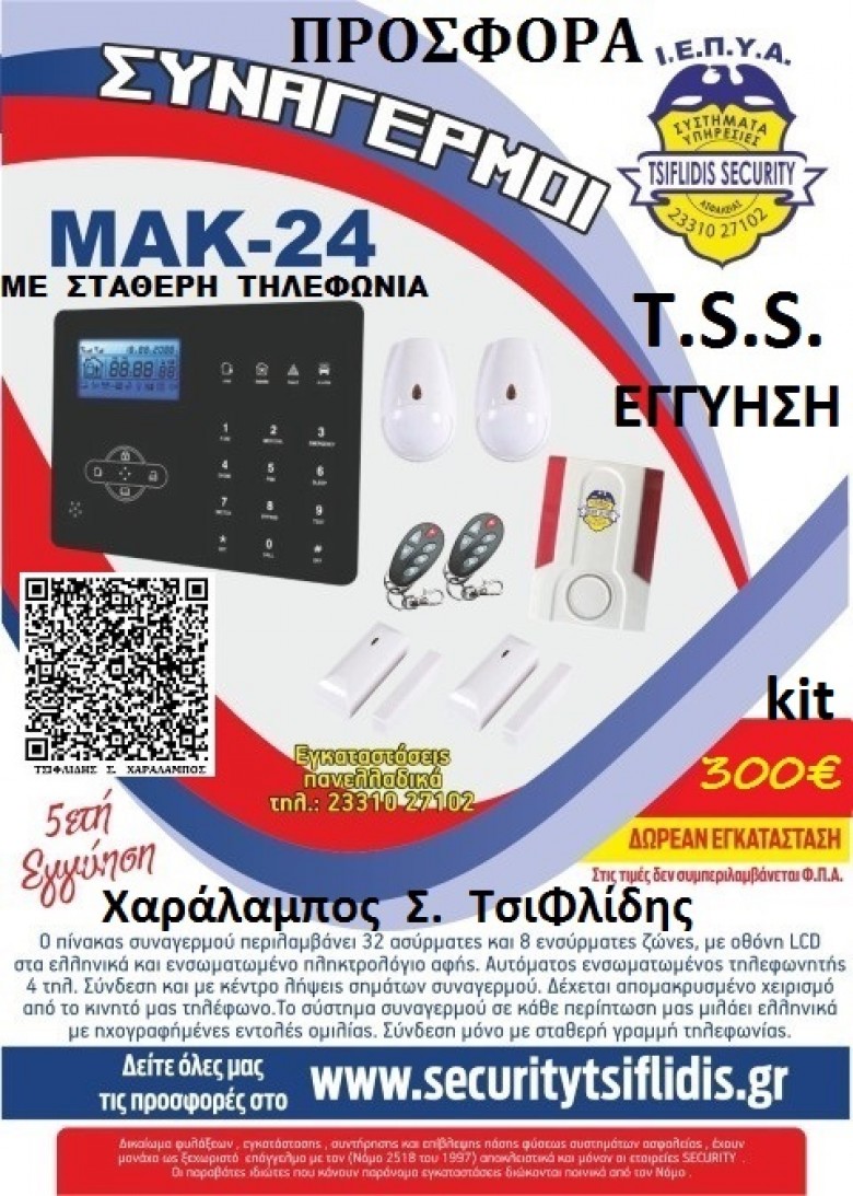 ΣΥΝΑΓΕΡΜΟΣ ΜΑΚ – 24 ΚΙΤ – ΠΡΟΣΦΟΡΑ ΤΗΣ __ ”TSIFLIDIS SECURITY SERVICES – T.S.S.”