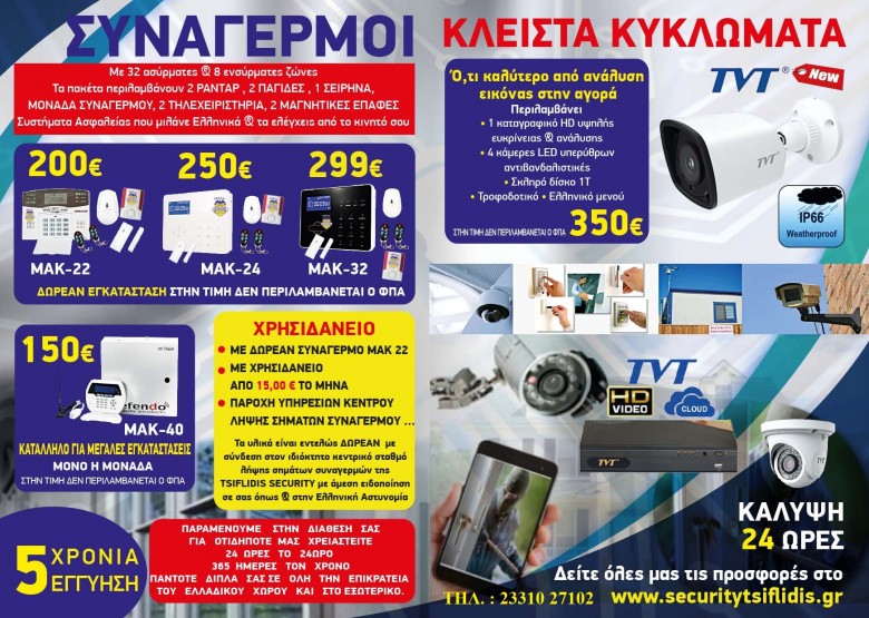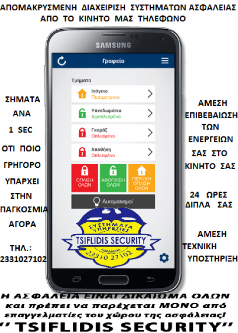 Καλέστε μας σήμερα κιόλας , να λύσουμε κάθε σας πρόβλημα στο θέμα της ασφάλειάς σας . __________________________ ΤΣΙΦΛΙΔΗΣ _ Σ.