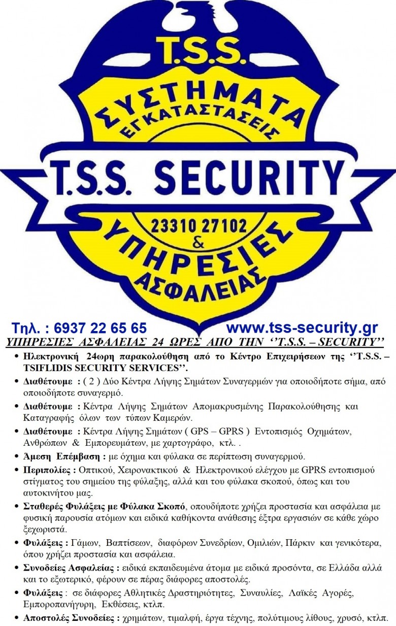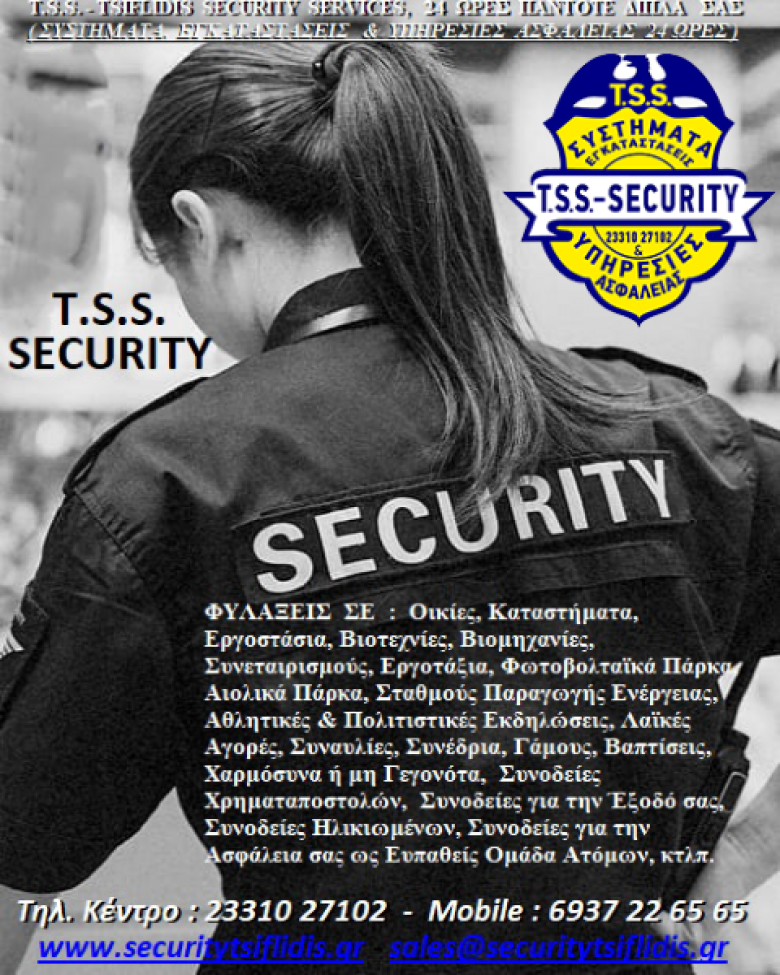 ΑΣΦΑΛΕΙΑ : ΚΑΛΥΨΗ ΠΡΟΣΤΑΣΙΑΣ ΦΥΣΙΚΩΝ ΠΡΟΣΩΠΩΝ ΚΑΙ ΑΓΑΘΩΝ, ‘T.S.S. – TSIFLIDIS SECURITY SERVICES’