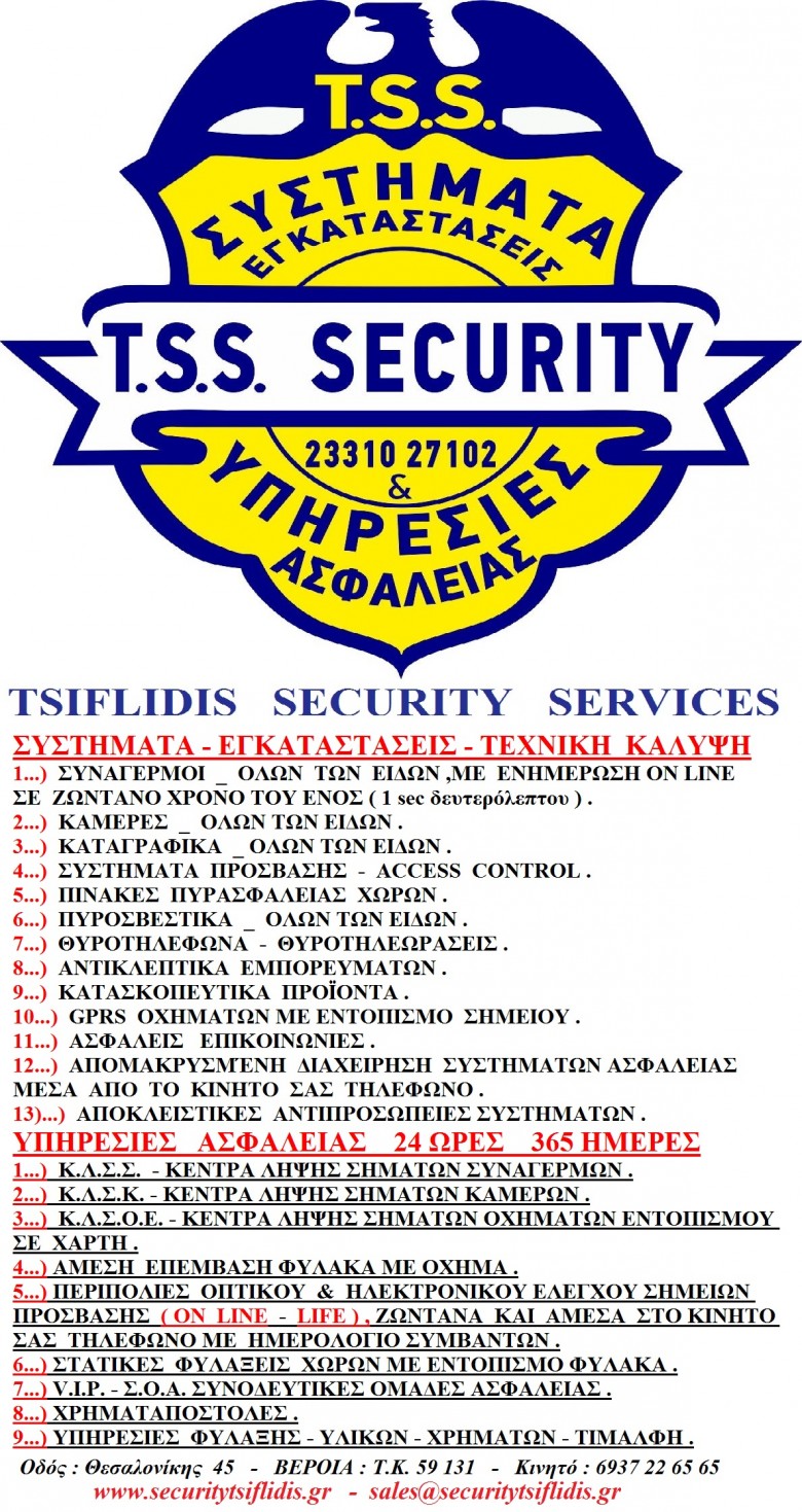 T.S.S. – TSIFLIDIS SECYRITY SERVICES, ΒΕΡΟΙΑ, ΗΜΑΘΙΑ, ΒΟΡΕΙΑ ΕΛΛΑΔΑ.