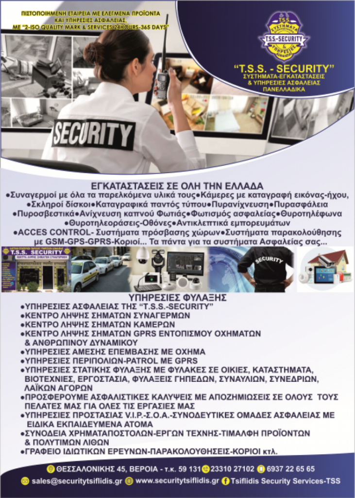 Στην Εταιρεία της Ασφάλειας ”T.S.S. – SECURITY ” , θα βρείτε μόνο Πιστοποιημένα προϊόντα και Υπηρεσίες Ασφαλείας, με ( 2 ) συστήματα λειτουργίας της ποιότητας ( I.S.O.) , όλων των προϊόντων και όλων των Υπηρεσιών Ασφαλείας μας, για αυτό τον λόγο δίνουμε γραπτή εγγύηση 5 ετών άμεσης αποκατάστασης όλων των υλικών, δίνουμε γραπτή εγγύηση της […]